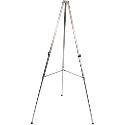 Portable light weight aluminium tripod easel perfect for supporting board and presentation materials Height adjustable legs Easy fold for storage and transport Aluminium Easel - lightweight to 1.6mts Accepts up to 1200 x 900mm board Includes BONUS carry bag Recommended for holding lighter boards only