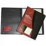 Traditional vinyl fixed pocket display book with copy safe pockets, metal corners and card window on inside of front cover