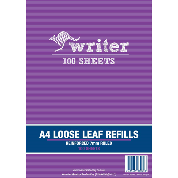 Writer loose leaf refills can be used to refill pages in ring binders Each page is pre-punched making them easy to insert, remove and update Lined and margin ruled to keep your writing neat and consistent Perfect for your everyday writing needs Ideal for home, office and school Reinforced binder holes 7 hole punched 7mm ruled one side