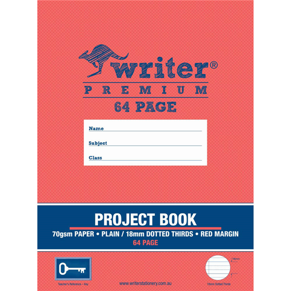 WRITER PREMIUM PROJECT BOOK 18MM PLAIN/DOTTED THIRDS 70GSM 64 PAGE 330 X 240MM KEY