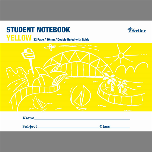 WRITER STUDENT NOTEBOOK 10MM DOUBLE RULED/GUIDE 32 PAGE 250 X 175MM YELLOW