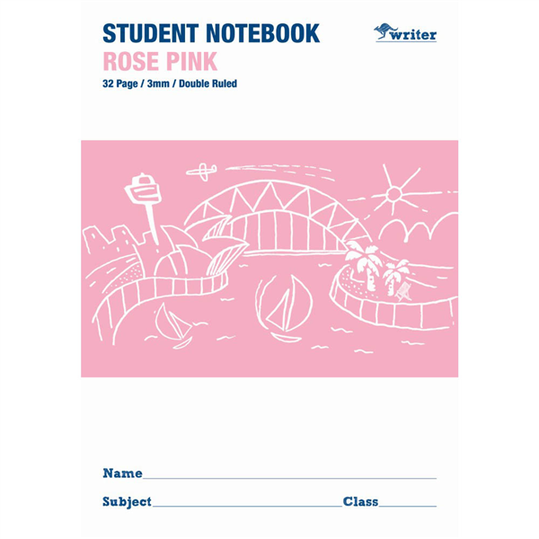 WRITER STUDENT NOTEBOOK 3MM DOUBLE RULED/GUIDE 32 PAGE 250 X 175MM ROSE PINK