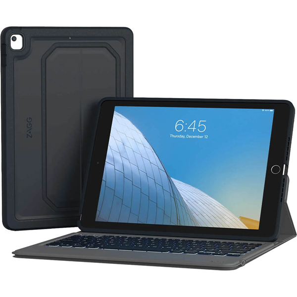 The Rugged Zagg Messenger wireless keyboard gives you a laptop-like typing experience, and the tough polycarbonate case protects your device with 2 metre of drop protection. The built-in stand, wireless connectivity, multi-device pairing, and backlit keys let you transform any surface into a workspace, so you can connect with the world.. or retreat from it Rugged, Durable Design - The multi-layered design and tough polycarbonate construction protect your device bangs, bumps, and scratches, and can withstand drops up to 2 meter The laptop-style keys give you clean, precise, even pressure with each keystroke. The keys are also backlit in seven different colors so you can type easily in low-light conditions Detachable Keyboard and Built-in Stand - The Rugged Messenger keyboard and case detach to accommodate different uses and work environments. The case's built-in, magnetic stand holds your tablet securely at multiple viewing angles so you can place your tablet on one surface and type with the keyboard on another Holder for Apple Pencil - The built-in holder for the Apple Pencil is conveniently located at the top of the case so your Apple Pencil is always at-hand when inspiration strikes Multi-Device Pairing - The Rugged Messenger wireless keyboard can pair with two devices at once, so you can sync with both your iPad and your smartphone and toggle between them Long-lasting Battery - The Rugged Messenger keyboard's long-lasting battery, so you don't have to drag along extra cords for charging 1-year manufacturer limited warranty