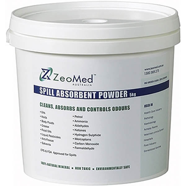 ZeoMed is the ideal solution for locations with spill risks ranging from biohazard and chemical spills to general slip and fall hazards, such as cooking oils or detergents Suitable for laboratories, supermarkets, shopping centres and restaurants Quick acting, natural absorbent of toxic and noxious odours 100% natural mineral and ecologically safe Non-toxic Absorbs excess moisture helping coagulate spills No shelf life - powder does not expire
