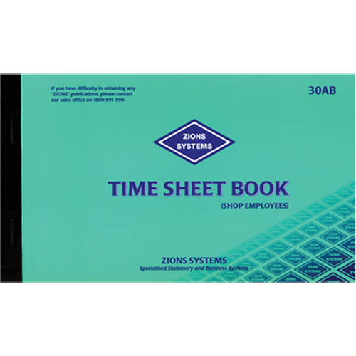 ZIONS 30AB TIME SHEET BOOK RETAIL SHOP EMPLOYEES